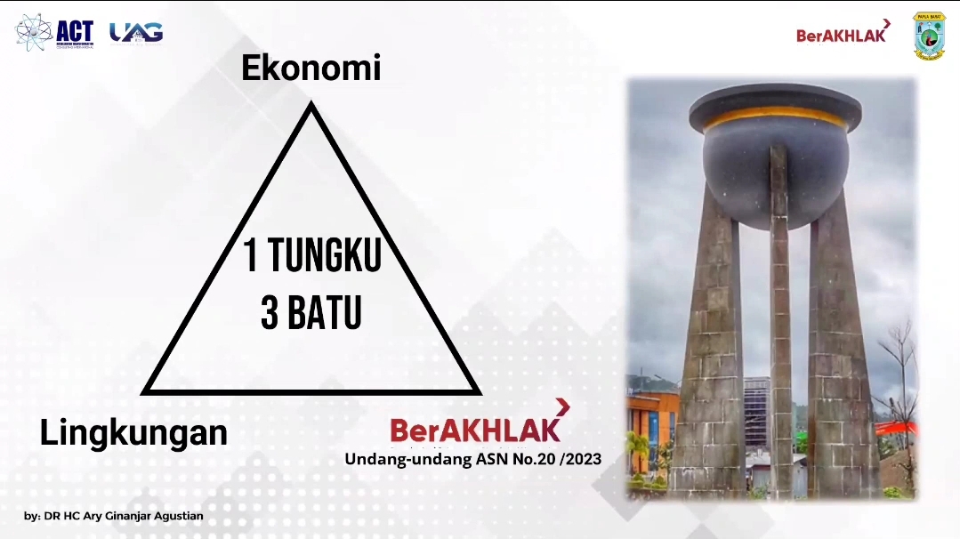Tetapi 1 tungku 3 batu yaitu kondisi bagaimana memajukan Papua Barat dalam 5-10 tahun ke depan. Ekonomi, lingkungan dan moral. Sesuai Undang-Undang nomor 20 tahun 2023 sudah disahkan bahwa semua ASN yang namanya moral itu sudah didefinisikan namanya BerAKHLAK."
