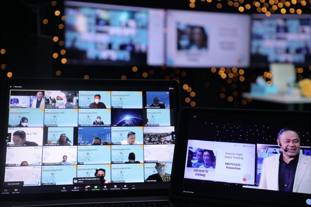 “Walaupun BSI dan Pelindo adalah sebuah perusahaan yang berbeda, yang satu dari bidang pelabuhan dan yang satunya dari bidang finansial dan spiritual berkah. Namun ada 1 kesamaan dari kalian wahai insan Pelindo dan BSI, ada yang tahu?” tanya Ary kepada ratusan peserta di Zoom dan ratusan viewers dari Youtube.