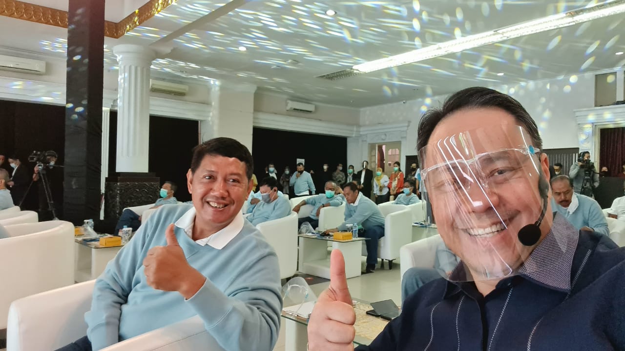 Ary dan Kuswiyoto foto bersama dengan wajah yang sumringah, nampak akrab di antara keduanya.