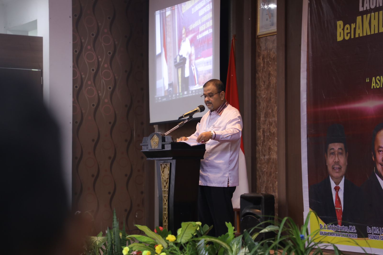 Selanjutnya, Sekjen Kemendagri memberikan sambutan serta paparannya, “Saya merasa mimpi pulang kemari ke Karimun bersama Pak Ary. Alhamdulillah dalam cuplikan video, Pak Presiden mengatakan bahwa sebaiknya seluruh ASN menggunakan nilai nilai dasar yang sama sebagai budaya kerja.”