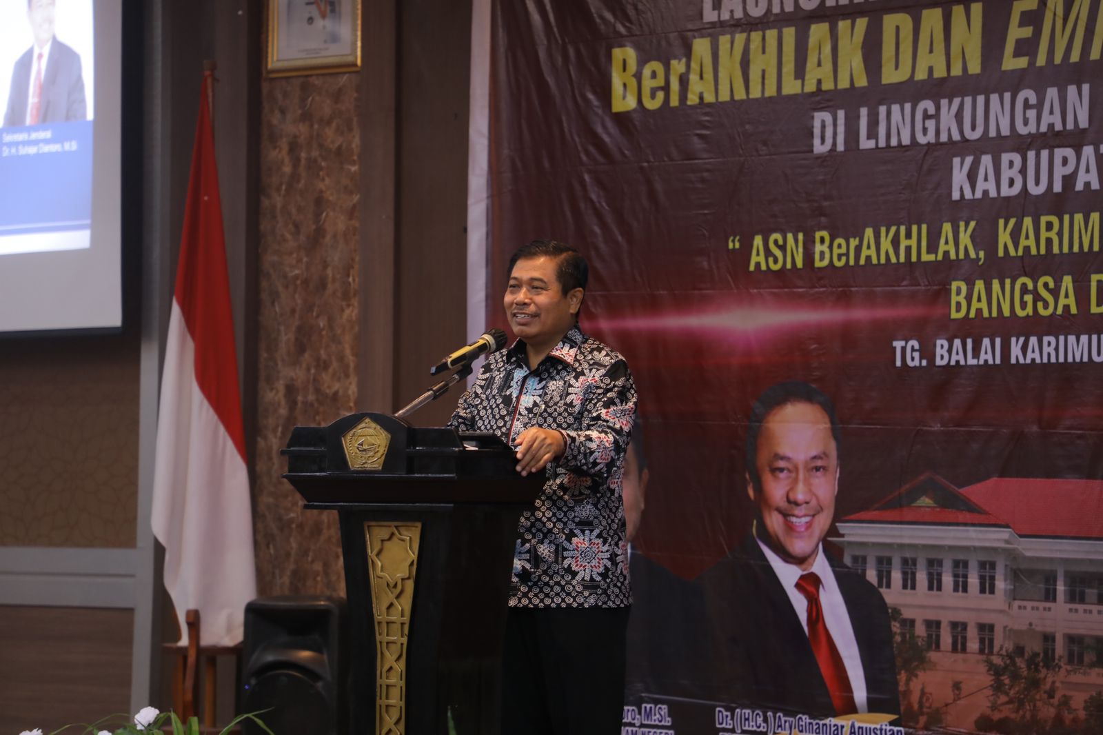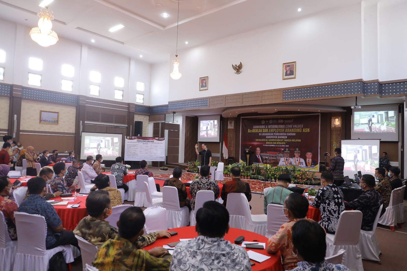 ESQNews.id, JAKARTA – Sabtu 23 April 2022 Pemerintah Kabupaten Karimun me-Launching sekaligus internalisasi Core Values ASN BerAKHLAK (Berorientasi pelayanan, Akuntabel, Kompeten, Harmonis, Loyal, Adaptif, Kolaboratif) dan Employer Branding Bangga Melayani Bangsa di lingkupnya. Kegiatan yang bertemakan “ASN BerAKHLAK, Karimun Bangkit, Bangga Melayani Bangsa dan Berkarya” itu digelar secara offline di Gedung Nilam Sari sedangkan yang online melalui Channel Youtube Pemkab Karimun dan Zoom Meeting.