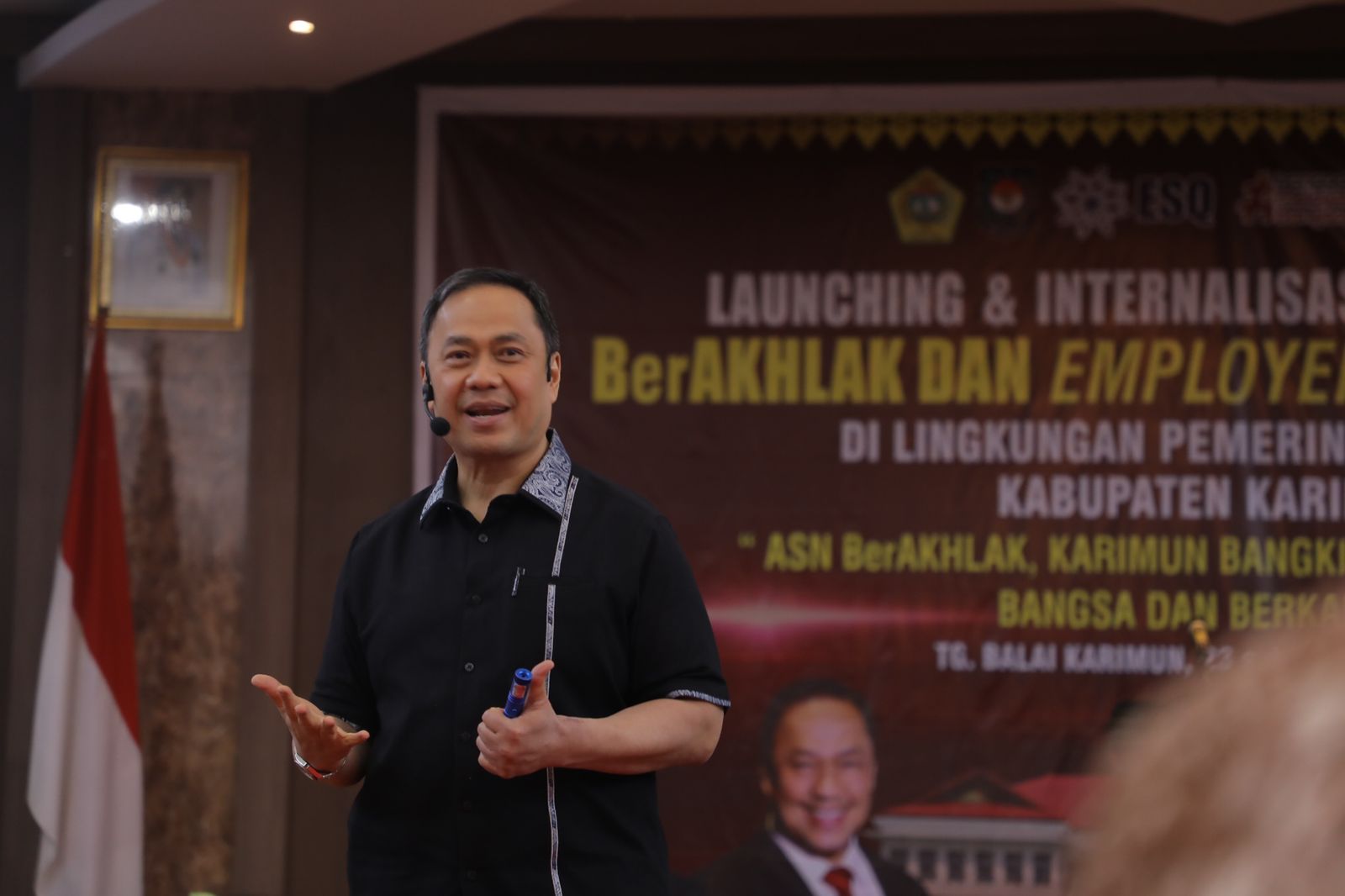 Ary juga mengajak insan ASN Karimun beserta istri atau suami serta anaknya untuk mengikuti pelatihan ESQ secara gratis di Jakarta. Namun, ajakan ini berlaku bagi yang belum sama sekali mengikuti training ESQ.