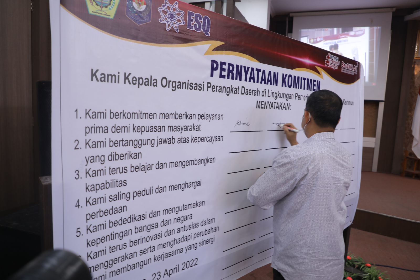 Di sela-sela acara diadakan Penandatanganan Komitmen “ASN BerAKHLAK, Karimun Bangkit, Bangga Melayani Bangsa dan Berkarya” oleh Pejabat/Kepala OPD Kabupaten Karimun.