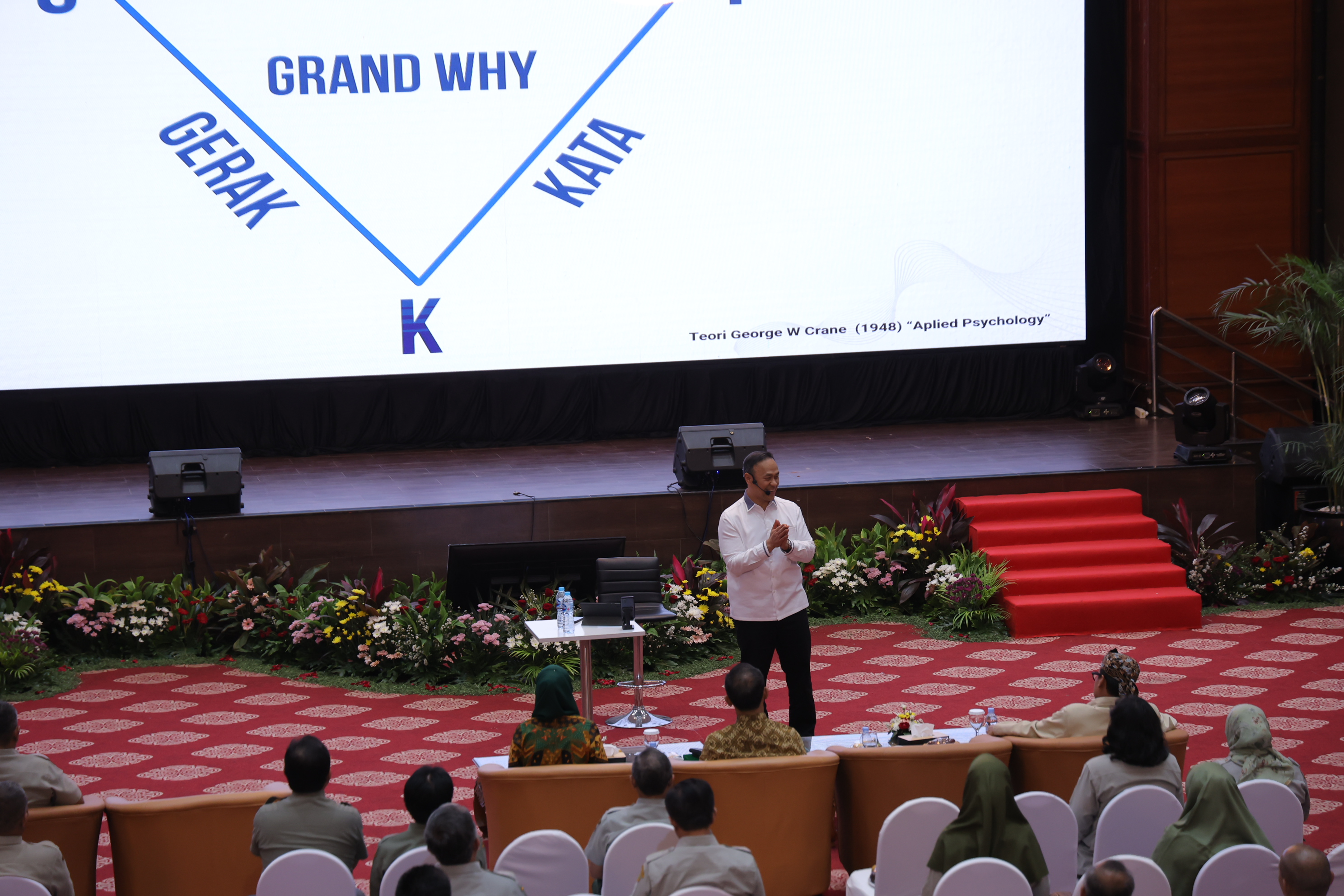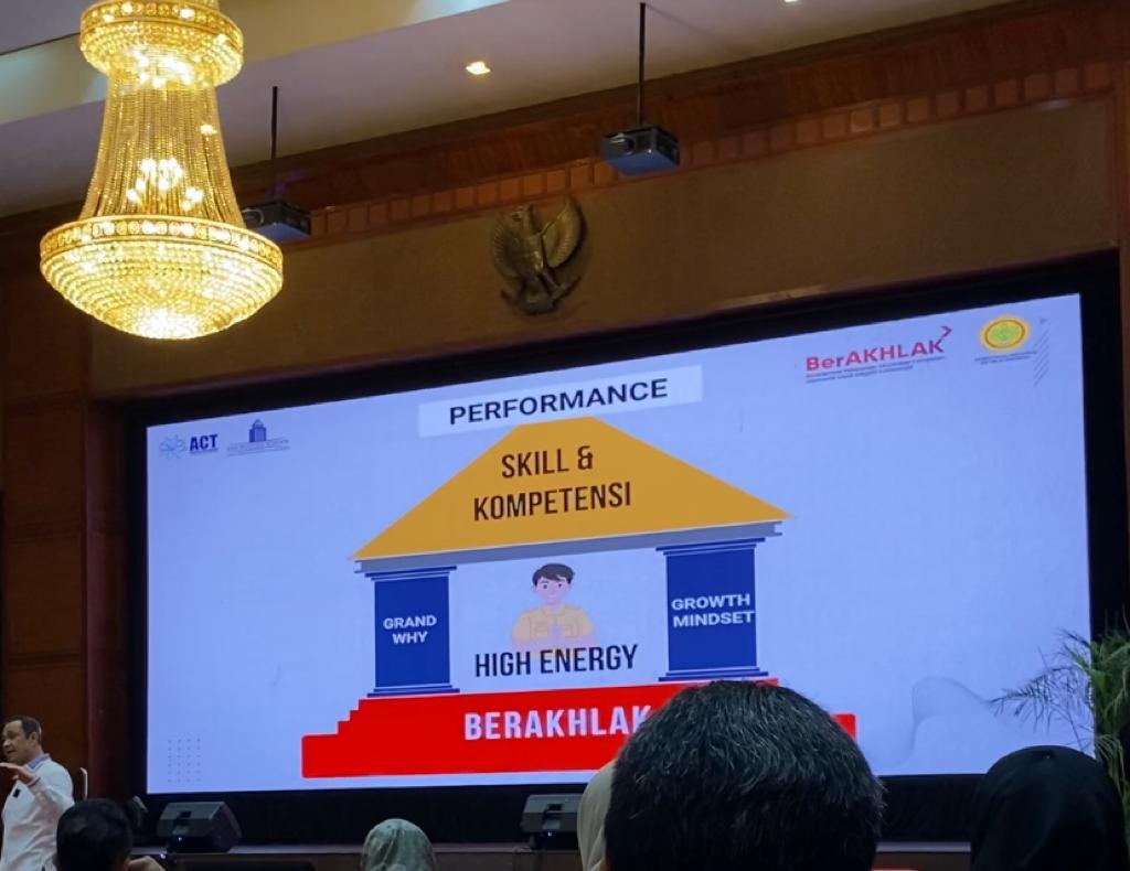 Kemudian tiangnya adalah para ASN harus memiliki niat kerja yang Grand Why, pikirannya Growth Mindset, dan High Energy (semangat membara ketika kerja). Setelah itu baru pertajam skill dan kompetensi (bagian atapnya)," sambungnya.