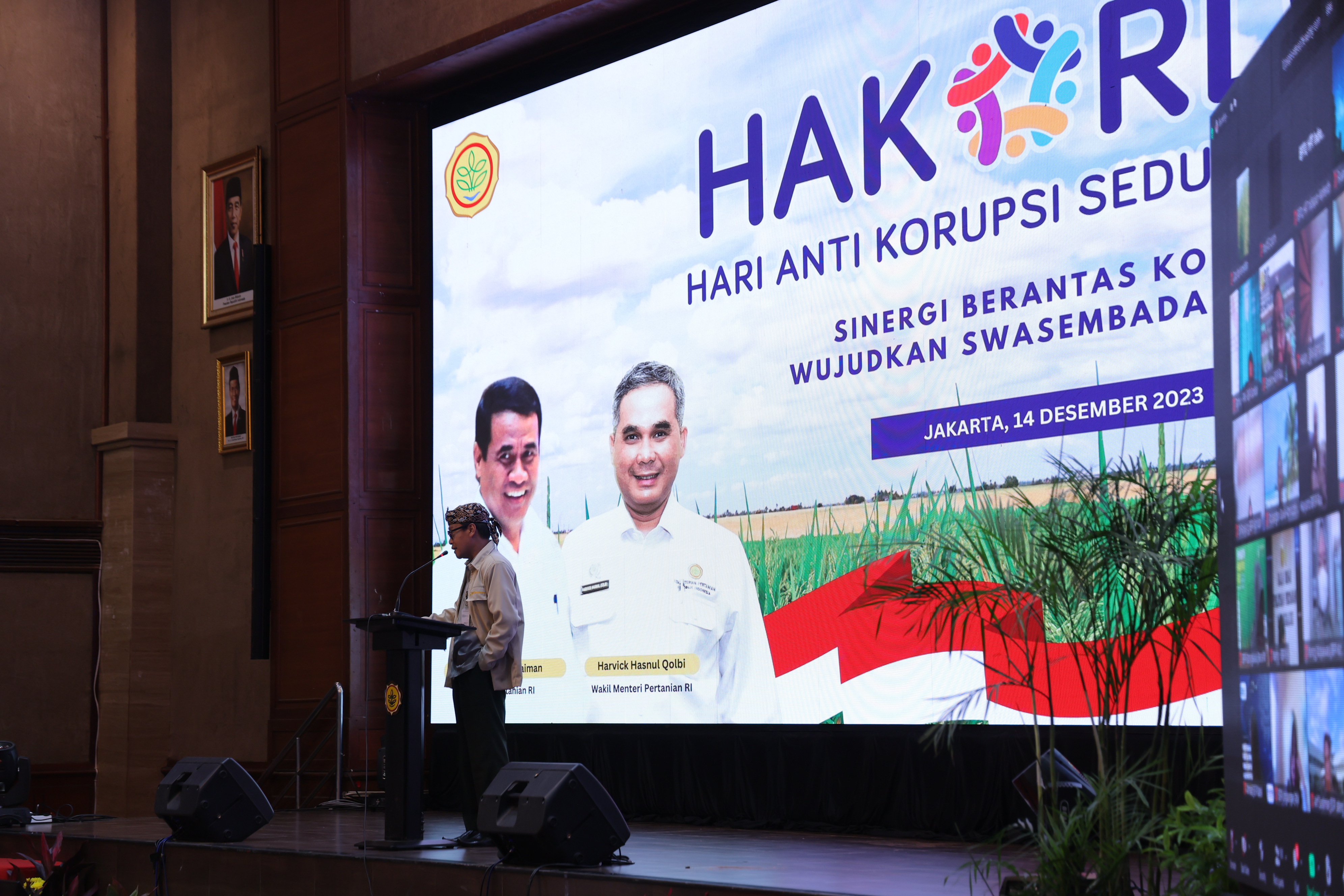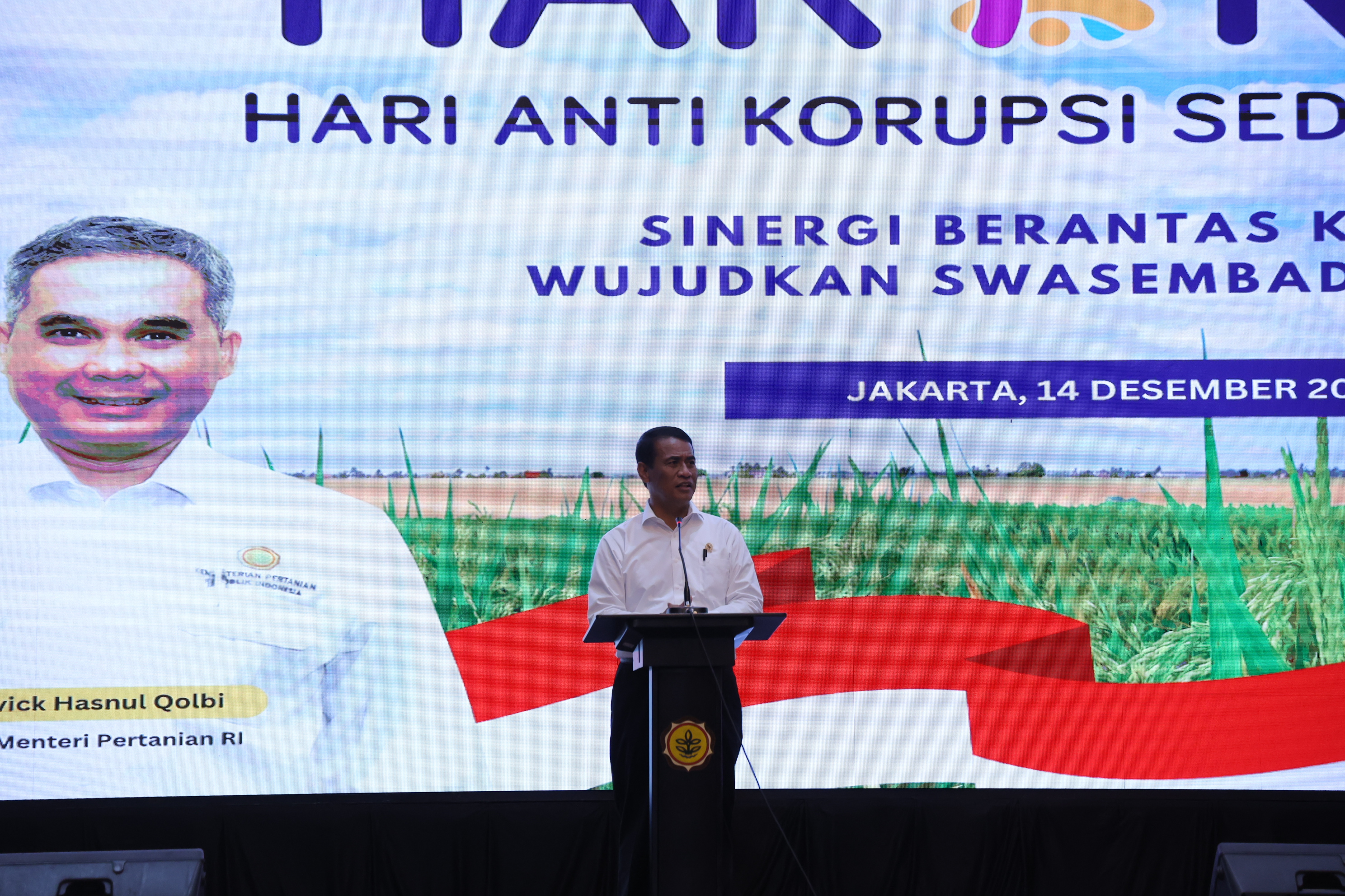 Demikian disampaikan Ary saat menghadiri Peringatan Hari Anti Korupsi Sedunia (Hakordia) sekaligus Pembinaan Mental bertema "Sinergi Berantas Korupsi, Wujudkan Swasembada Pangan" yang digelar di Auditorium Utama Kantor Pusat Kementan, Jakarta Selatan, Kamis 14 Desember 2023.