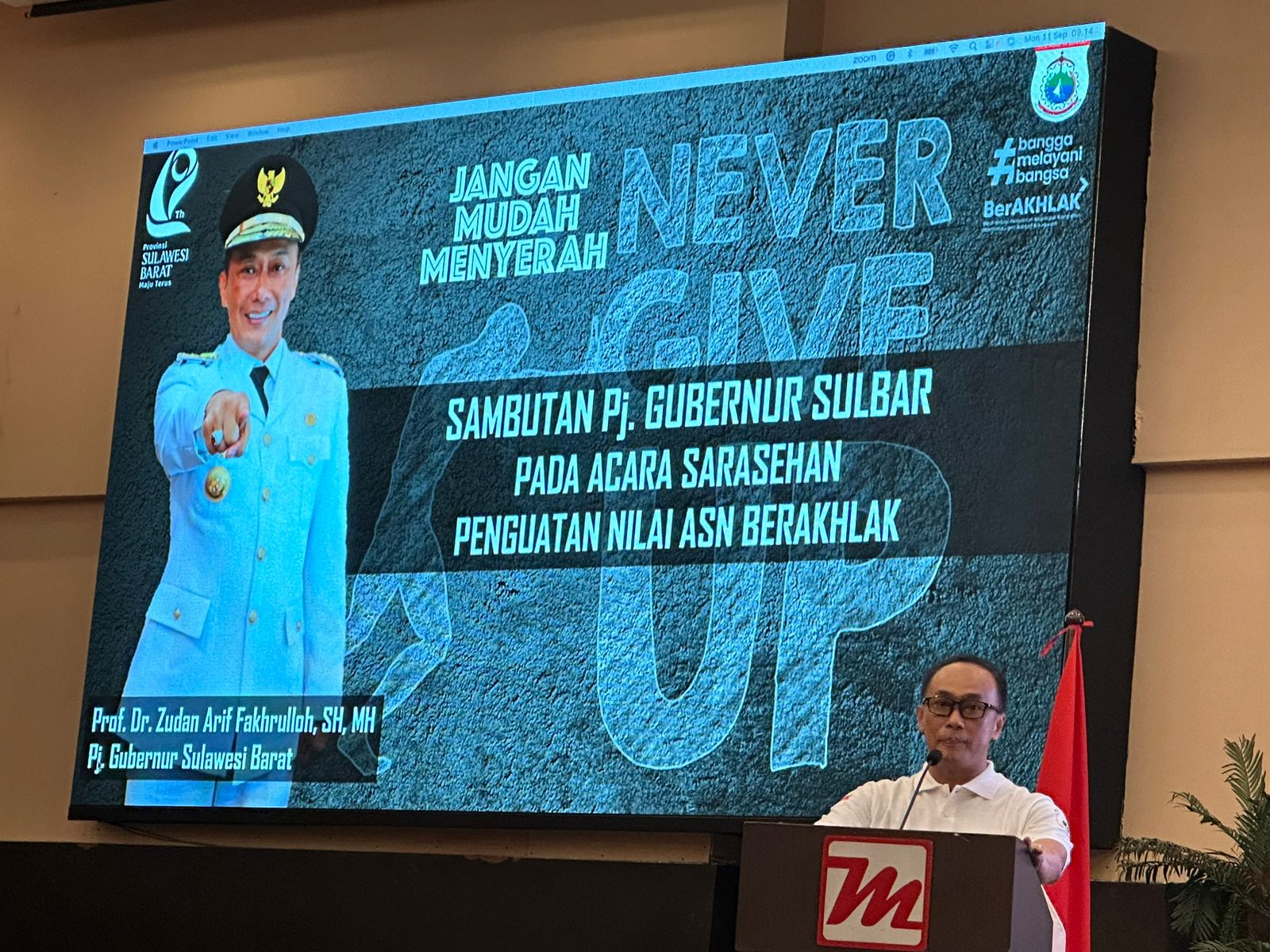 Hal itu disampaikan oleh Pj Gubernur Sulbar Prof. Zudan Arif Fakrulloh saat memberikan pengarahan dihadapan 600 ASN Pemprov yang mengikuti kegiatan tersebut.