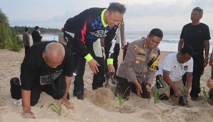 ESQNews.id, CIRACAP – Sebagai upaya pelestarian lingkungan di pantai Pangumbahan, Kecamatan Ciracap, Kapolres Sukabumi AKBP Maruly Pardede mendampingi Brigjen Pol. Arif Rahman dan Founder ESQ Group Ary Ginanjar lepas liarkan ratusan tukik dan penanaman pohon Pandan Laut pada hari Jumat tanggal 8 Desember 2023.