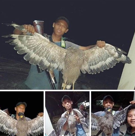 Namun baru-baru ini viral seorang pemuda menembak burung elang Jawa atau garuda. Melalui sebuah postingan akun Facebooknya dengan bangga pamer foto bersama elang hasil buruannya.