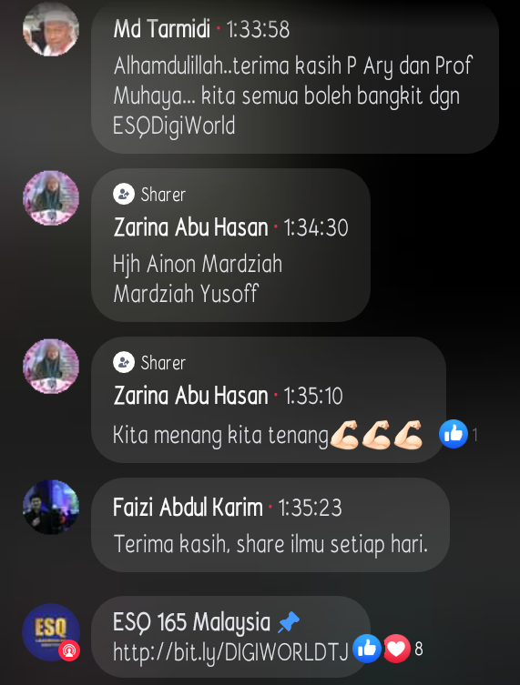 Selain Ary, hadir pula Bonda Prof. Muhaya (transformational speaker & ophthalmologist), Abu Talib (moderator) dan Firdaus Djumaris (trainer ESQ Malaysia). Acara tersebut disiarkanmelalui Youtube, Facebook, Instagram ESQ Malaysia bahkan Zoom Meeting.