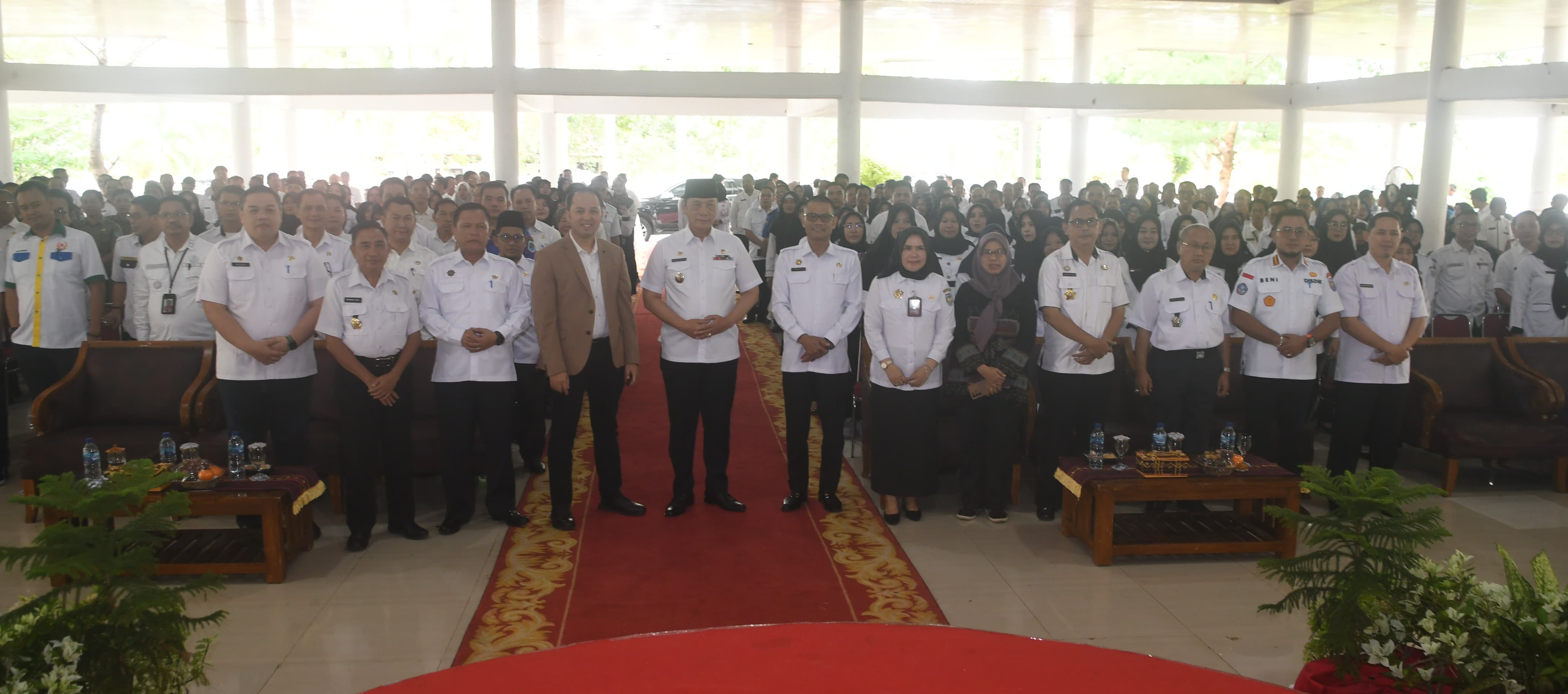 Coach Andry Fallash, SE., CT., CPET., CEMHT dari tim ESQ sukses mengajak H. Sholehien Abuasir, SP., M.Si (Wakil Bupati OKU Selatan), M. Rahmatullah, SSTP., MM (Sekda) serta ratusan peserta bergerak dan main game bersama.