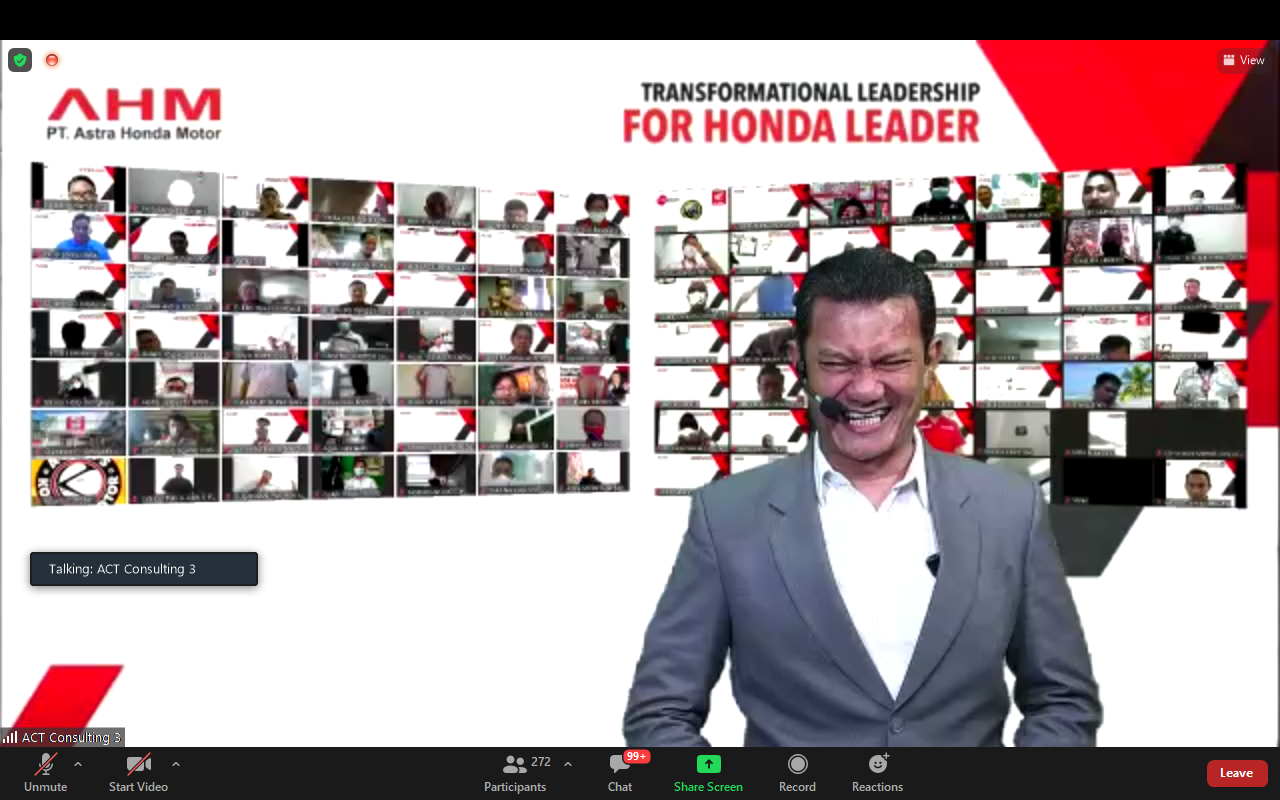 ESQNews.id, JAKARTA – Ratusan leaders PT Astra Honda Motor (AHM) telah mengikuti Transformational Leadership Program dari ACT Consulting melalui Zoom Meeting pada Kamis, 16 Desember 2021. Hadir juga di dalamnya Anto Yuniarso selaku HC3 Division Head (GM), Vita Maya Kusumawati (HC3 Departemen Head), dan M. Diaz Bonny  selaku Project Leader di PT AHM.
