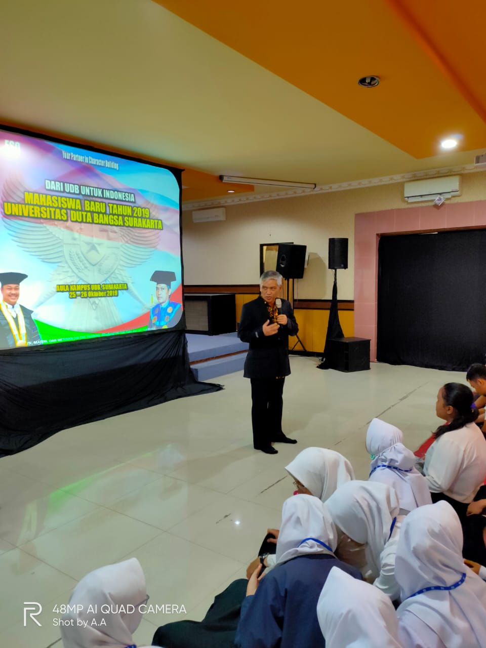 Rektor UDB Surakarta, Singgih Purnomo MM menegaskan, “Pentingnya Training ESQ ini bagi para Mahasiswa dalam menghadapi era 4.0 yang dengan perubahan itu perlu bekal yang tidak hanya skill dan knowledge namun juga yang utama karakter,” terangnya.