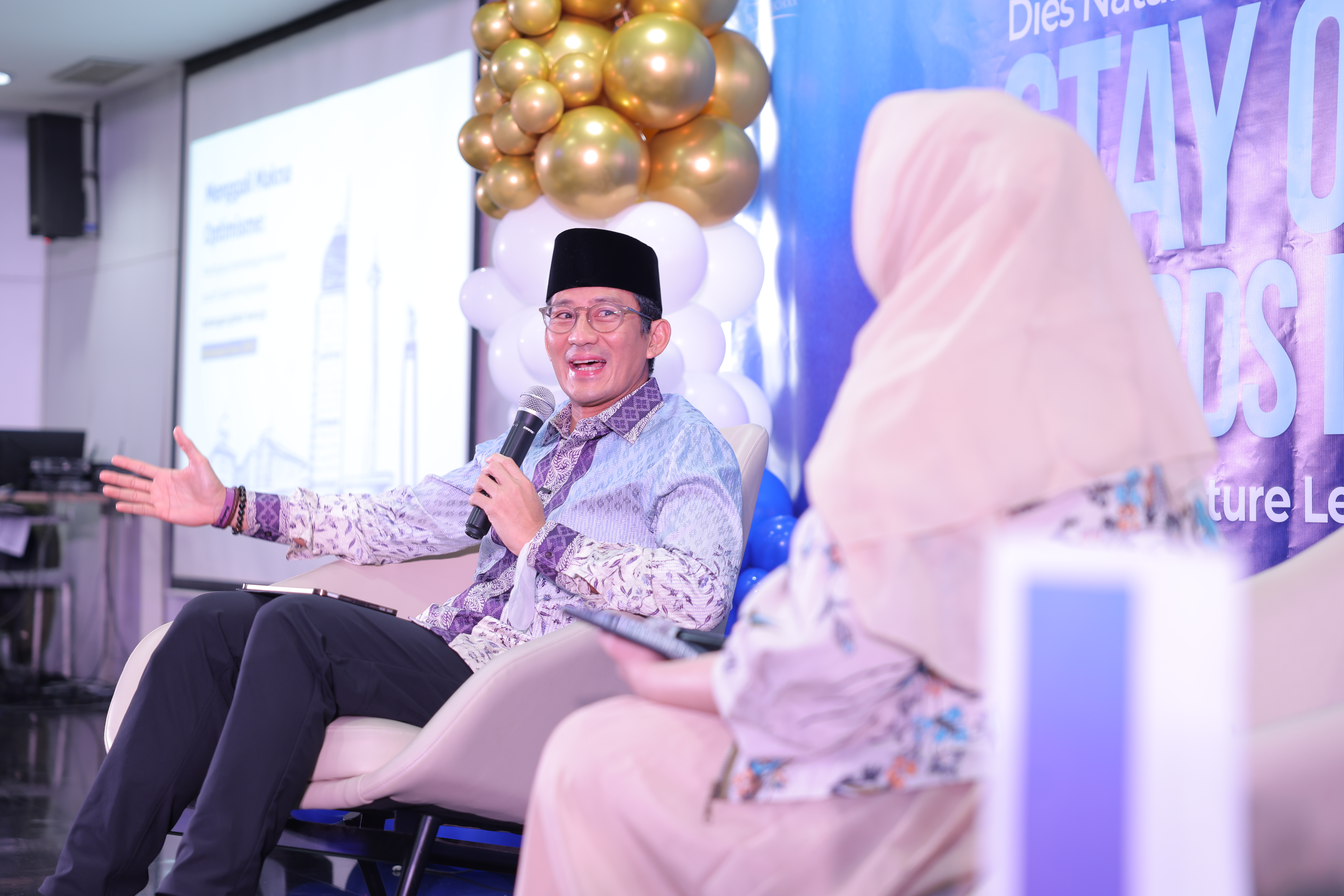 ESQNews.id, JAKARTA - Dies Natalis ke-12 ESQ Business School, Dies Natalis ke-1 UAG University, serta Milad Dr. (H.C) Ary Ginanjar Agustian (Founder ESQ Cor ke-60 menghadirkan Dr. H. Sandiaga Salahuddin Uno, B.B.A., M.B.A. yang memberikan Stadium Generale kepada para mahasiswa di Kampus UAG University, Menara 165 pada tanggal 24 Maret 2025.