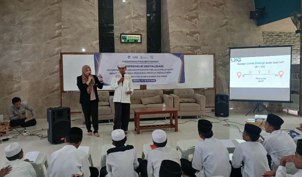 ESQNews.id, BOGOR - Pesantren kini tidak hanya menjadi pusat pendidikan spiritual, tetapi juga wadah pemberdayaan ekonomi berbasis teknologi. Hal ini terwujud melalui keberhasilan program Pengabdian kepada Masyarakat (PKM) bertajuk “Santripreneur Digital: Pemberdayaan Ekonomi Santri melalui Pelatihan Bisnis Online dan Branding Produk Pesantren”, yang digagas oleh dosen-dosen Universitas Ary Ginanjar dan dilaksanakan di Pesantren Tahfiz Assyifa Al-Islami, Parung, Kabupaten Bogor.