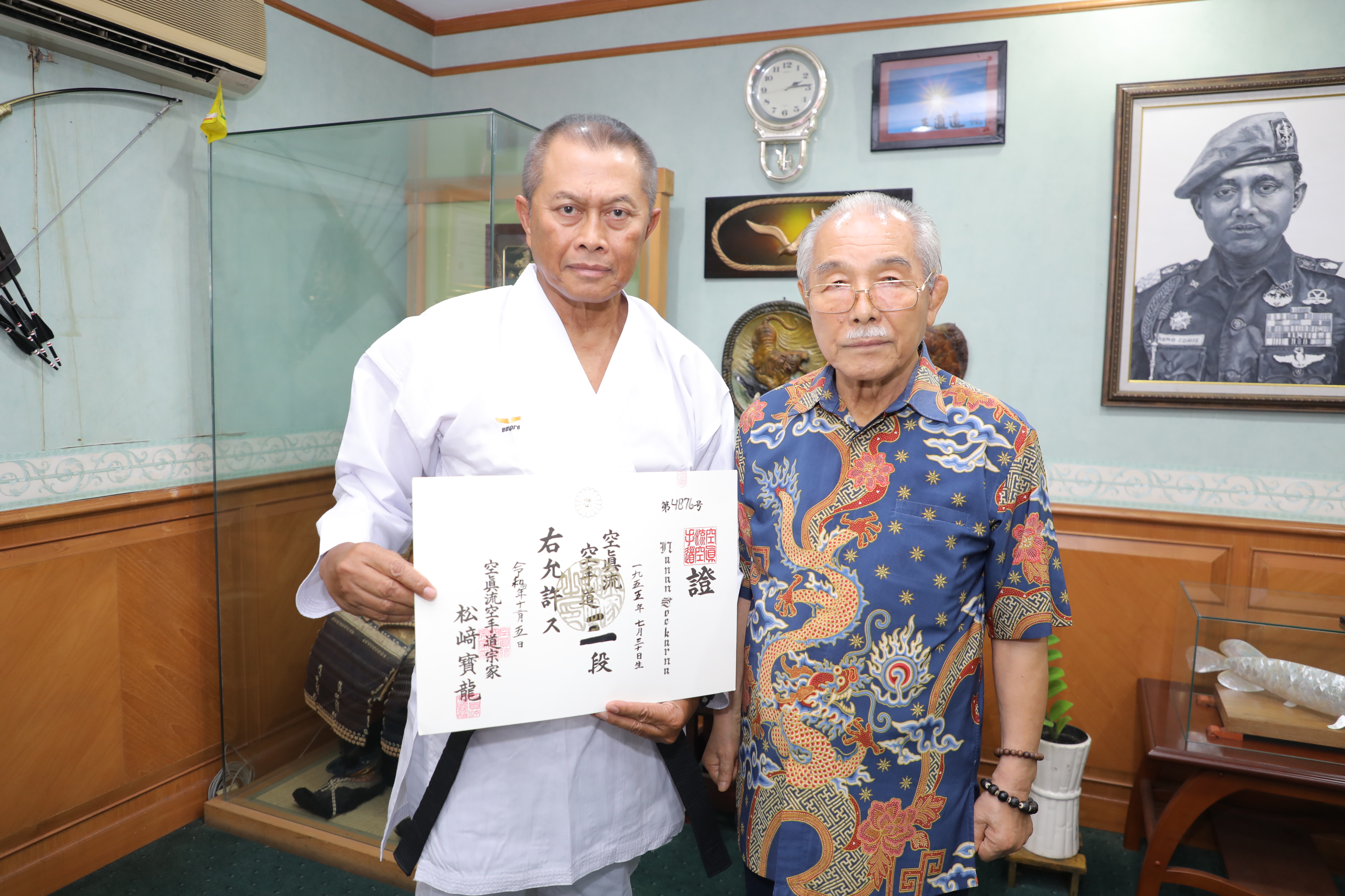 ESQNews.id, JAKARTA – Di saat yang bersamaan, Souke Horyu S. Matsuzaki, Guru Besar Kushin Ryu M Karate-Do Indonesia (KKI) memberikan Ijasah Karate DAN serta RENSHI (tanda jasa) kepada 2 orang yakni Laksamana TNI (Purn.) Dr. Ade Supandi, S.E., M.A.P. (mendapat DAN IV) & Komisaris Jenderal (Purn.) Drs. Nanan Soekarna (mendapat DAN III).