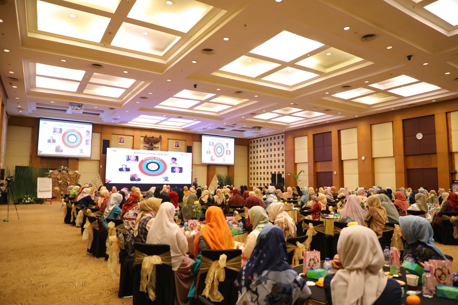 “Tuhan memilih ibu ibu semua yang ada di sini untuk menjaga suaminya, menjaga anak-anak. Maka tips kedua adalah menentukan niat kita. Tentukan dorongan para suami. Apakah pekerjaan suami hanya berdasarkan dorongan strong why yaitu finansial saja? Atau dorongan big why yaitu kesenangan akan jabatan? Atau grand why yaitu untuk kontribusi yang lebih besar lagi?”