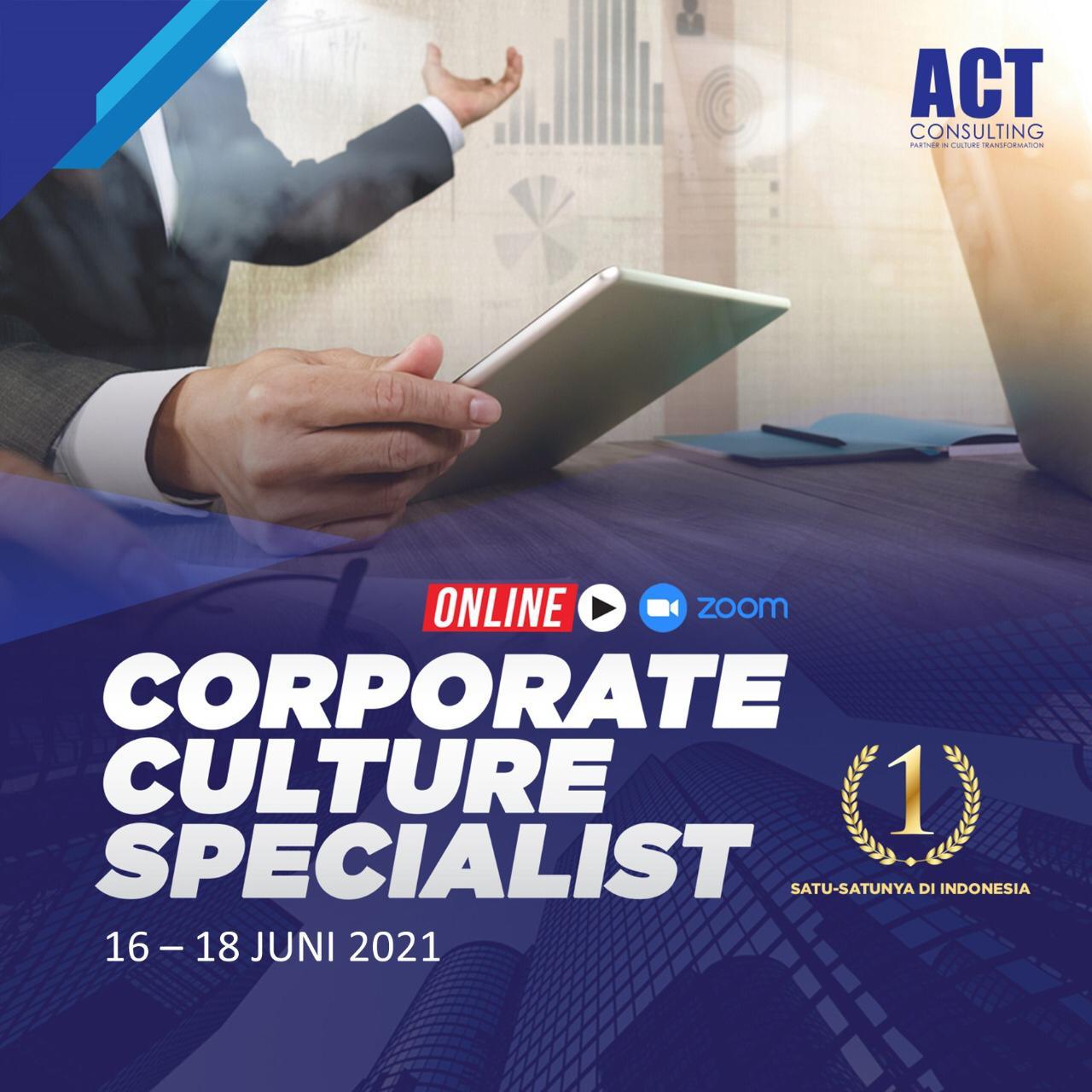 Corporate Culture Specialist (CCS) merupakan program training untuk Tim Pengelola Budaya di perusahaan/organisasi. Training yang berlangsung selama 3 (tiga) hari ini akan membantu memberikan framework, skill, dan benchmark pada tim budaya yang dibentuk.