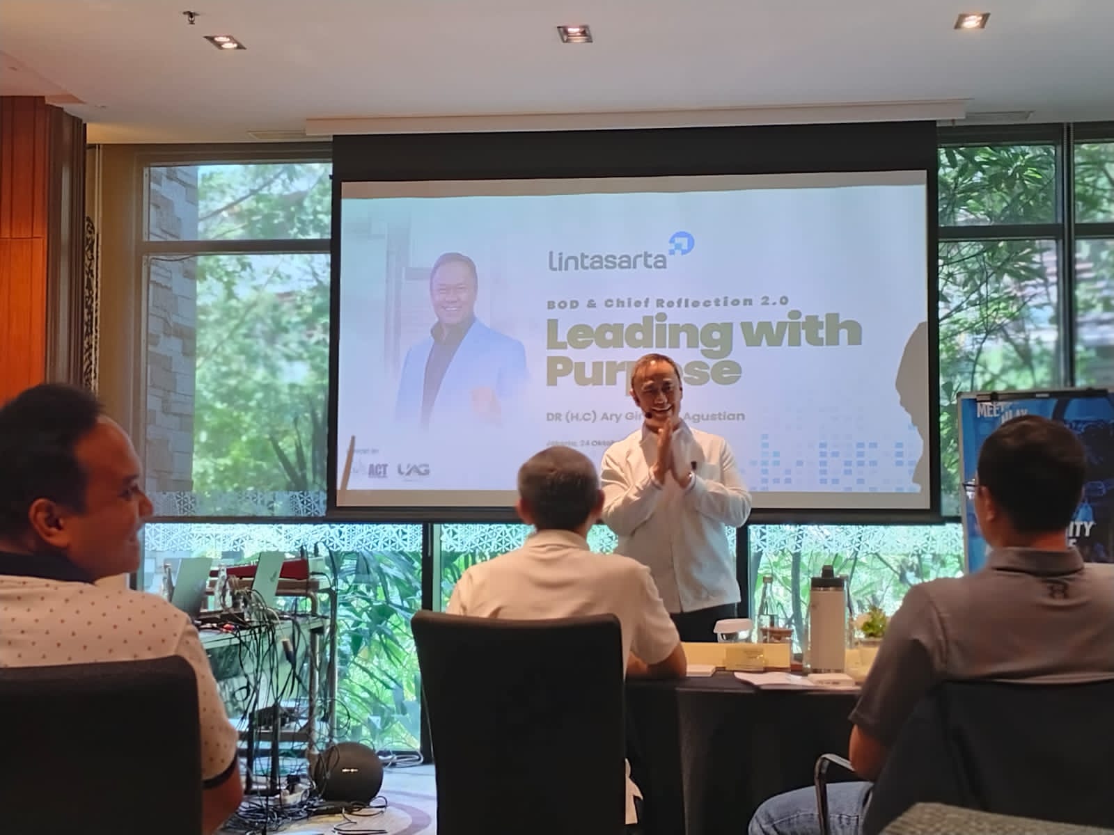 Acara kita hari ini adalah momen untuk BoD dan Chief Lintasarta untuk melakukan refleksi karena kita masuk ke pitch stop sebentar, untuk mengevaluasi apa yang sudah ada di kita yang harus kita improve. Apa yang belum ada, kita harus isi. Apa yang kurang, kita bisa tambah. Apa yang tidak perlu, kita hilangkan."