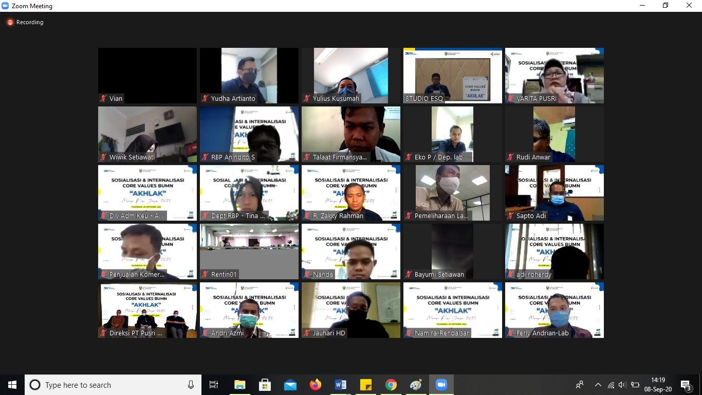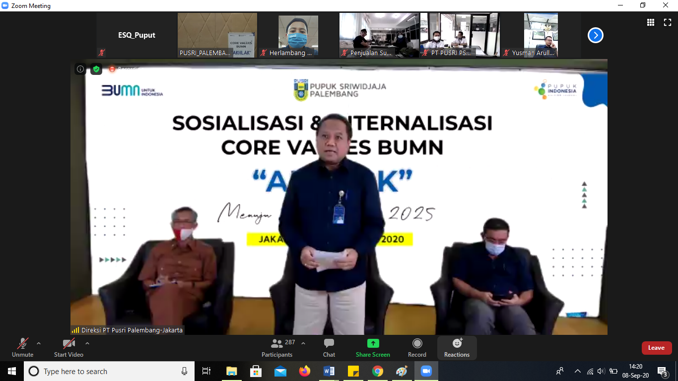 Maka dari itu, Pusri menyelenggarakan acara sosialisasi dan internalisasi Core Values AKHLAK BUMN pada Selasa (8/9/2020) secara daring dengan jumlah sekitar 400 partisipan.