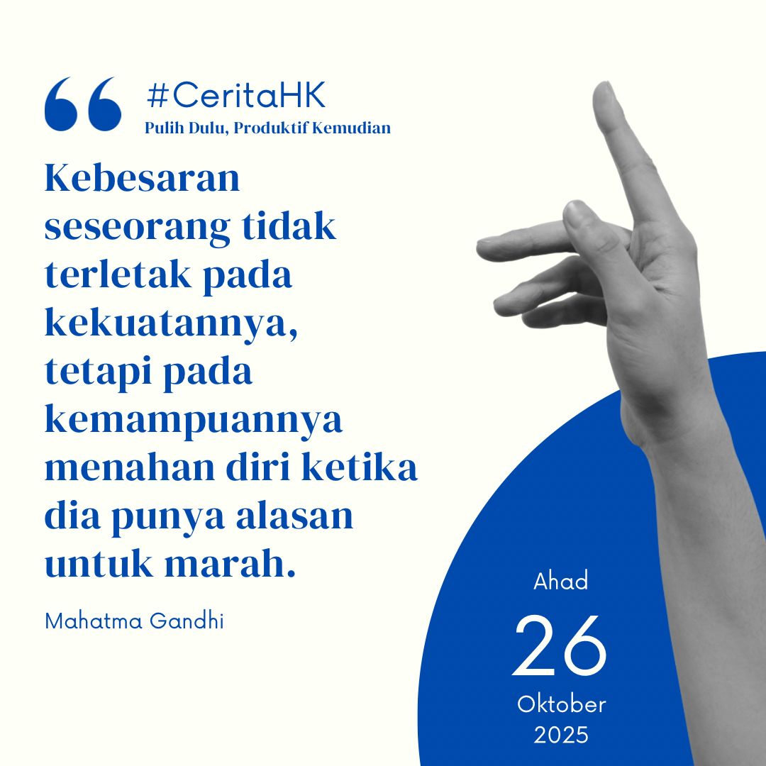 "Kebesaran seseorang tidak terletak pada kekuatannya, tetapi pada kemampuannya menahan diri ketika dia punya alasan untuk marah.” — Mahatma Gandhi