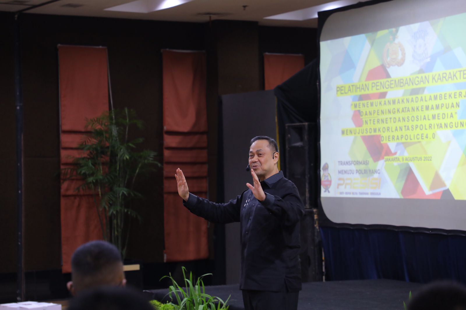 Pelatihan kali ini mengusung tema Pengembangan Karakter Diri Korlantas Polri, dengan maksud dan tujuan untuk Menemukan Makna dalam Bekerja dan Peningkatan Kemampuan Internet serta Sosial Media Menuju SDM Korlantas Polri yang Unggul Di Era Police 4.0.