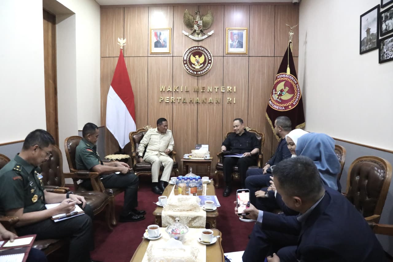 Dalam kesempatannya, Wamenhan didampingi oleh Sekretaris Jenderal Kemhan serta Kepala Biro Kepegawaian Setjen Kemhan dalam pertemuan tersebut. (Biro Infohan Setjen Kemhan)
