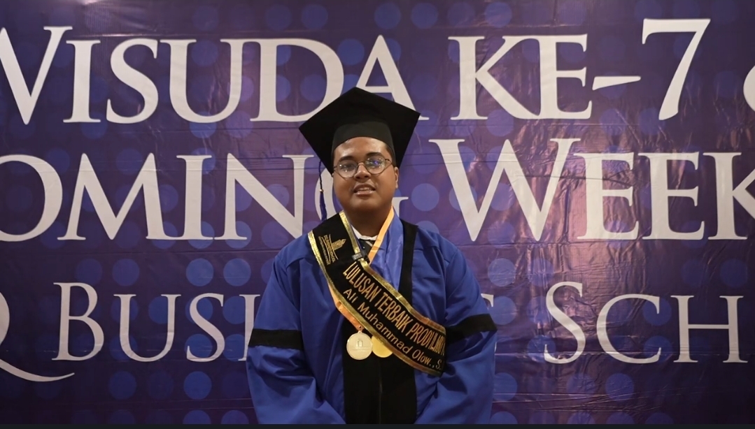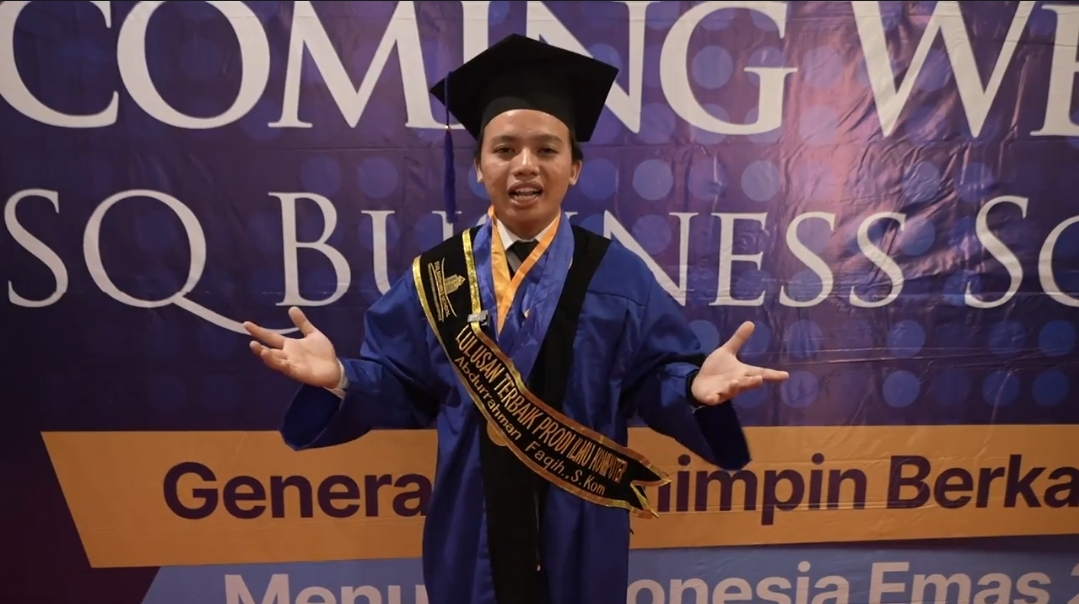 Abdurahman Faqih, "Kesan saya selama berkuliah 4 tahun di ESQ Alhamdulillah begitu banyak pengalaman yang saya dapatkan, begitu banyak pelajaran yang saya dapatkan. Terlebih saya bisa support training-training ESQ, bisa berkontribusi karena di ESQ Business School bukan hanya mementingkan intelektual saja tapi juga ditopang dengan nilai-nilai emosional, dan juga dikuatkan fondasinya dengan nilai-nilai spiritual yang mana kami, para wisudawan, para mahasiswa ESQ Business School selama 4 tahun diberikan pembekalan karakter dan itulah ciri khas kami sehingga sekarang terbentuklah wisuda ESQ Business School yang berkarakter.