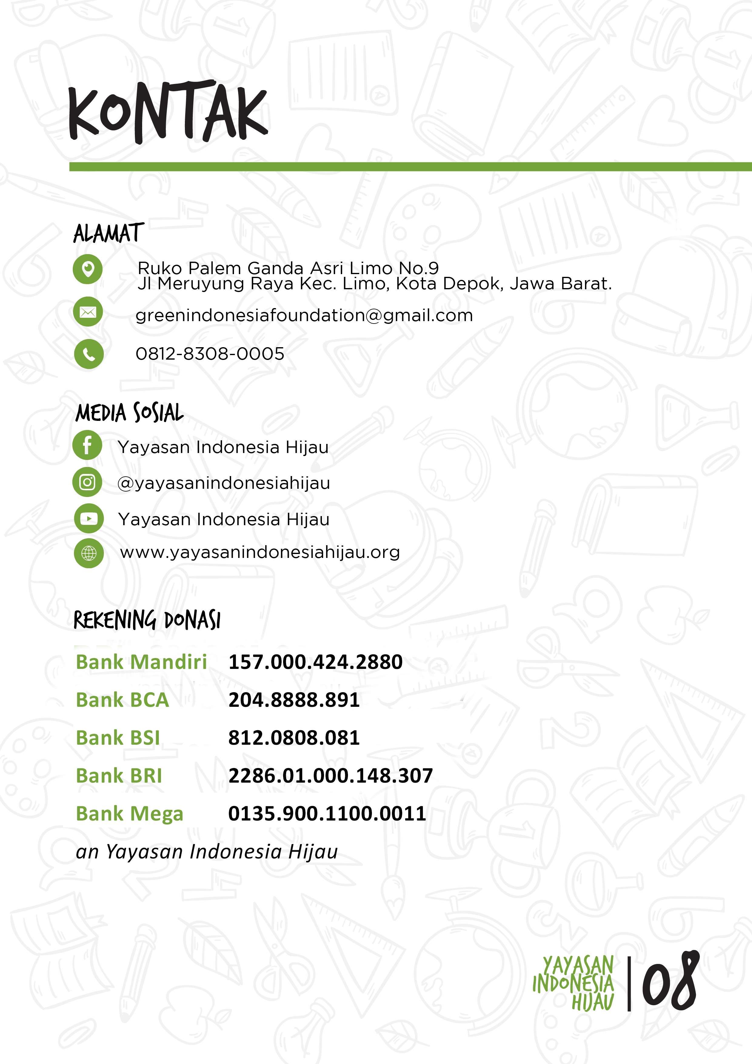 Warga dan anak-anak binaan Yayasan Indonesia Hijau adalah masyarakat pra sejahtera yang tinggal di pemukiman lapak pemulung dengan mata pencaharian sebagai pemulung, pengamen, serta asisten rumah tangga dimana mereka memiliki keterbatasan untuk memiliki pendidikan formal dan memiliki kendala untuk mengakses perkembangan globalisasi. Sehingga mereka mengalami kesulitan dalam meningkatkan keahlian dan pengetahuan guna dapat bersaing dengan masyarakat milenial saat ini.