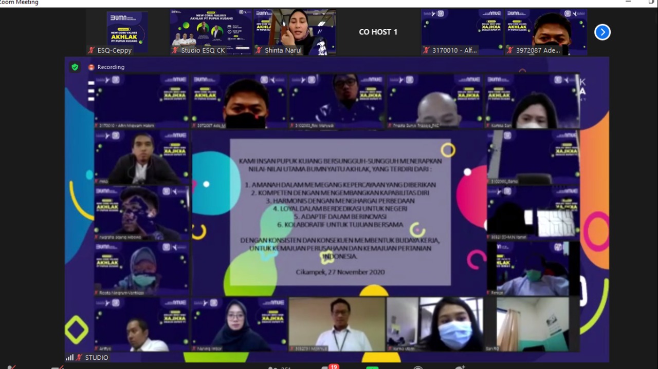Tim ACT Consulting coba membantu wujudkan harapan dari semua karyawan PT Pupuk Kujang dari berbagai level ini yakni peningkatan Corporate Culture yang mendukung peningkatan bisnis perusahaan. Serta Awaraness terhadap Core Values AKHLAK. Ary Ginanjar dan Eka Chandra jelaskan secara gamblang beberapa materinya.