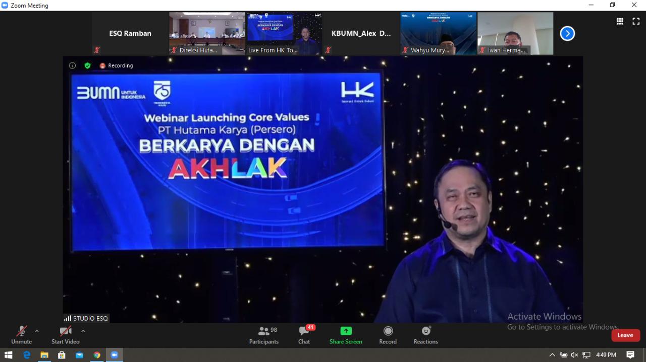 1.000 Orang PT Hutama Karya Hadir dalam Webinar Launching Core Values AKHLAK BUMN