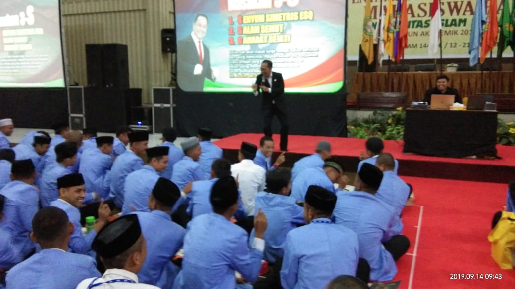 Selama 2 hari, ribuan mahasiswa baru UIM sangat antusias mengikuti pembekalan pembentukan karakter yang dipandu oleh Trainer Agus Wiyono dari ESQ Leadership Center beserta Assisten Trainer Zulkifli dan para Alumni Training Support (ATS) UIM.
