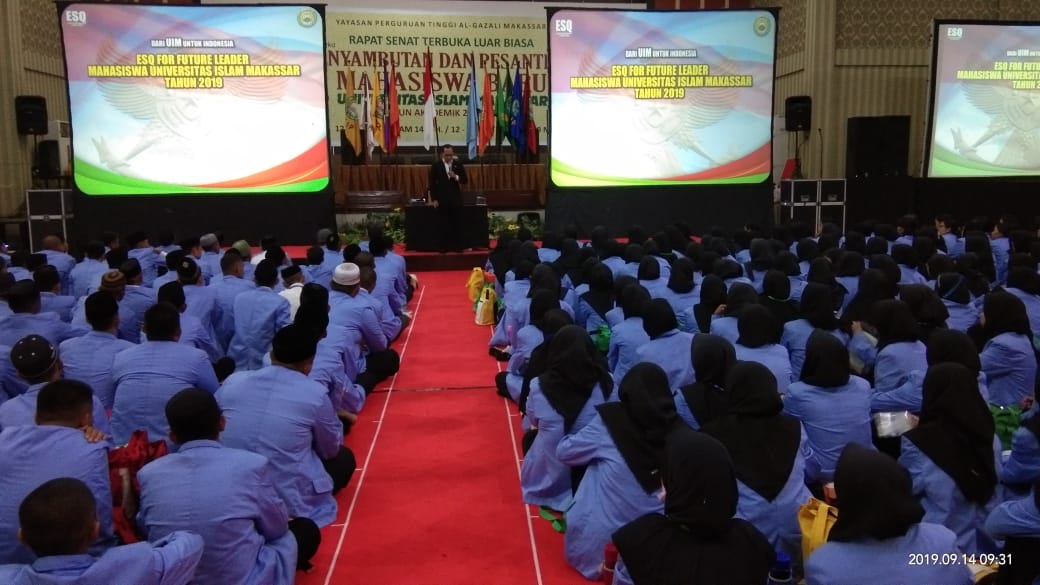 ESQNews.id, MAKASSAR – Sebanyak 1.130 orang mahasiswa baru tahun 2019 Universitas Islam Makassar (UIM) mengikuti Training ESQ Character Building pada Sabtu-Minggu (14-15/9/2019) di Auditorium K.H Muhyiddin Zain UIM, Makassar, Sulawesi Selatan.
