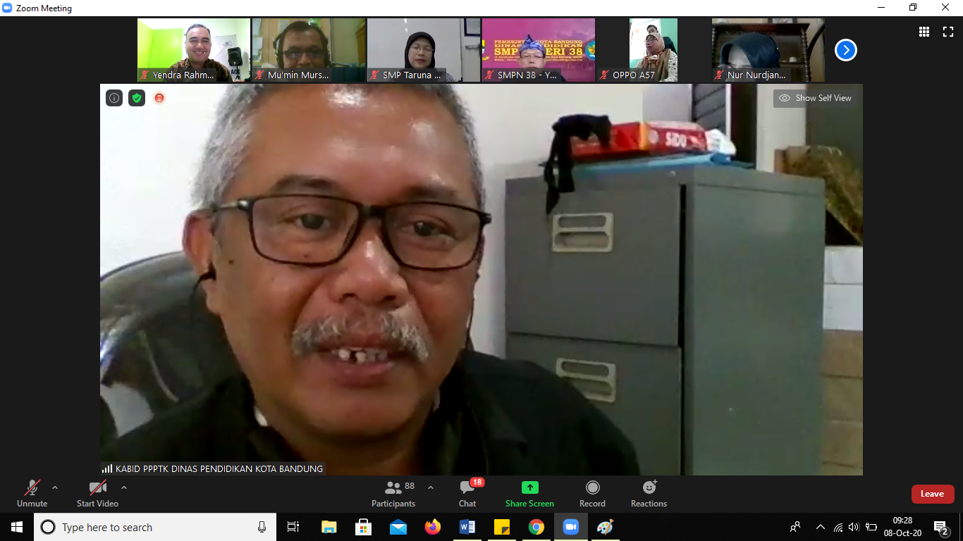 Edi berkesempatan hadir dalam Seminar "Cara Mengajar Anti Boring di Era Daring" pada Kamis (08/10/2020) via daring.