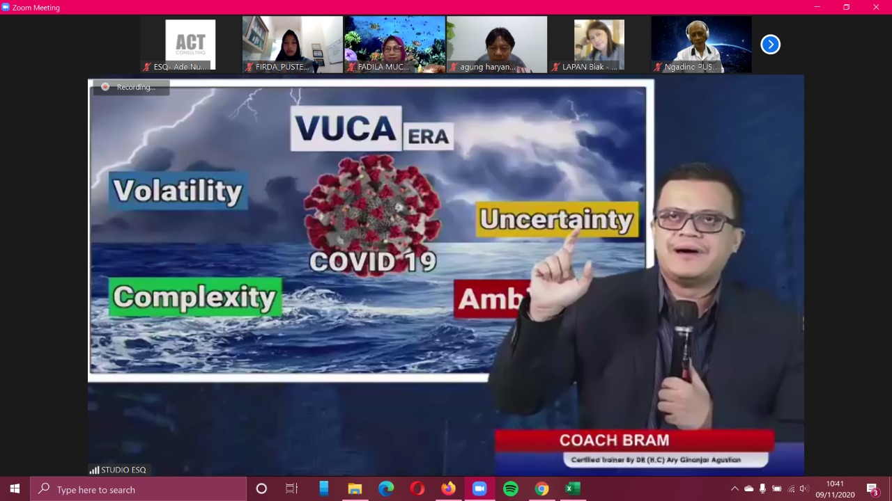 ESQNews.id, JAKARTA – Hari ini tepatnya pada Senin (9/11/2020) sedang berlangsung training Leading a New Normal Batch 3 di Lembaga Penerbangan dan Antariksa Nasional (LAPAN) yang diikuti oleh 55 change agent LAPAN.