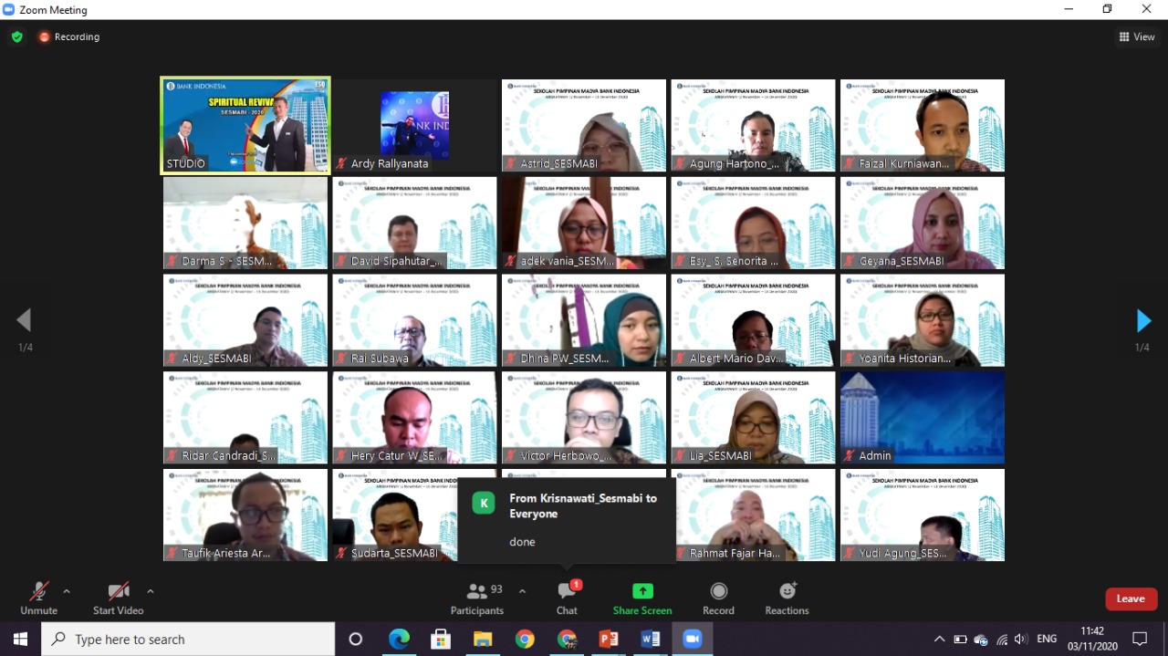 ESQNews.id, JAKARTA - Calon Asisten Direktur Bank Indonesia (SESMABI) mengikuti salah satu program dari ACT Consulting, yakni Training Spiritual Revival pada Selasa (3/11/2020) by Zoom Meeting.