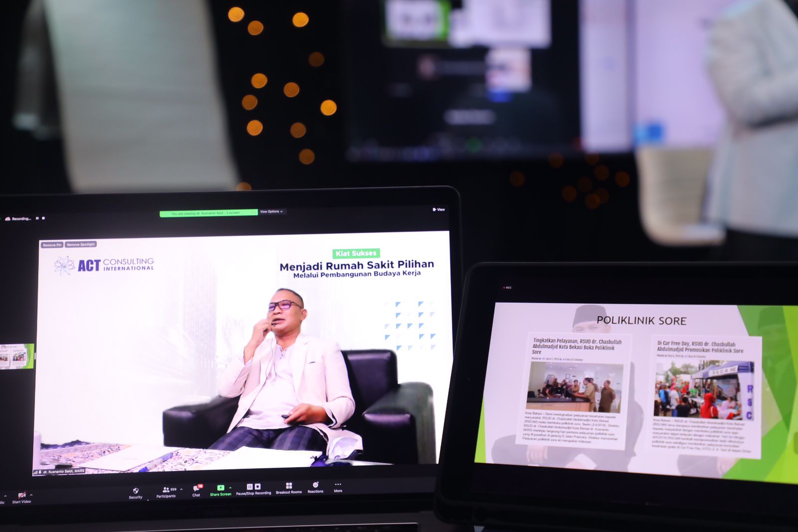 ESQNews.id, JAKARTA – Untuk pertama kali ACT Consulting memberikan webinar untuk para pengelola Rumah sakit dan tenaga medis. Kegiatan ini berlangsung pada Rabu 23 Maret 2022 melalui Zoom Meeting, dengan mengusung tema “Kiat Sukses Menjadi Rumah Sakit Pilihan melalui Pembangunan Budaya Kerja.” Acara ini mendapat sambutan positif, terlihat dari peserta yang hadir berjumlah 1600 dan 229 Rumah Sakit dari Sabang hingga Merauke. Lebih dari 50 peserta adalah jajaran direksi.
