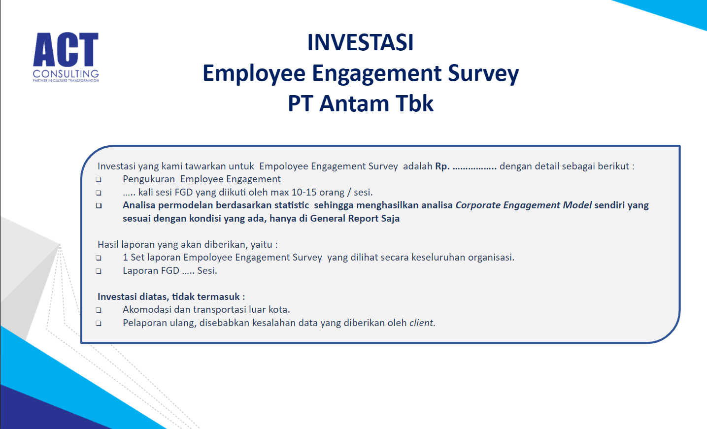 hasil engagement survey. Maka dari itu, hal utama yang dilakukan ACT Consulting