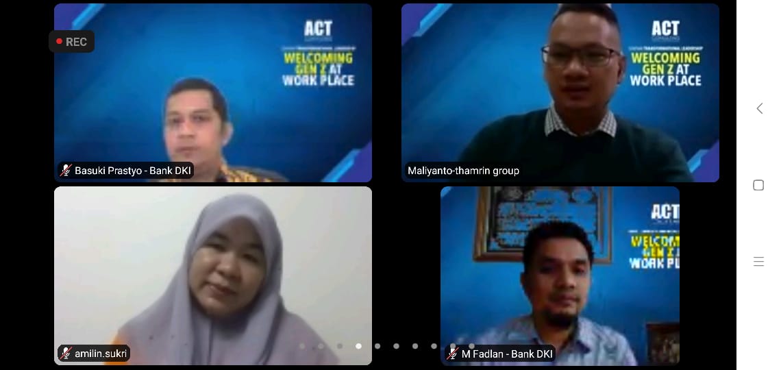 ESQNews.id, JAKARTA – 500 orang lebih yang berasal dari dua Negara yakni Indonesia dan Malaysia itu join event yang digelar oleh ACT Consulting secara cuma-cuma pada Kamis (20/5/2021) secara daring, mengusung tema “Welcoming Gen Z at Work Place.” Rinaldi Agusyana, Tiko (trainer lisensi Dr. (H.C) Ary Ginanjar Agustian) yang memandu ratusan peserta pelatihan itu, serta narasumber Erni Yurianti (President Director PT MADANI Corp) yang hadir untuk memberikan sharing motivasi.
