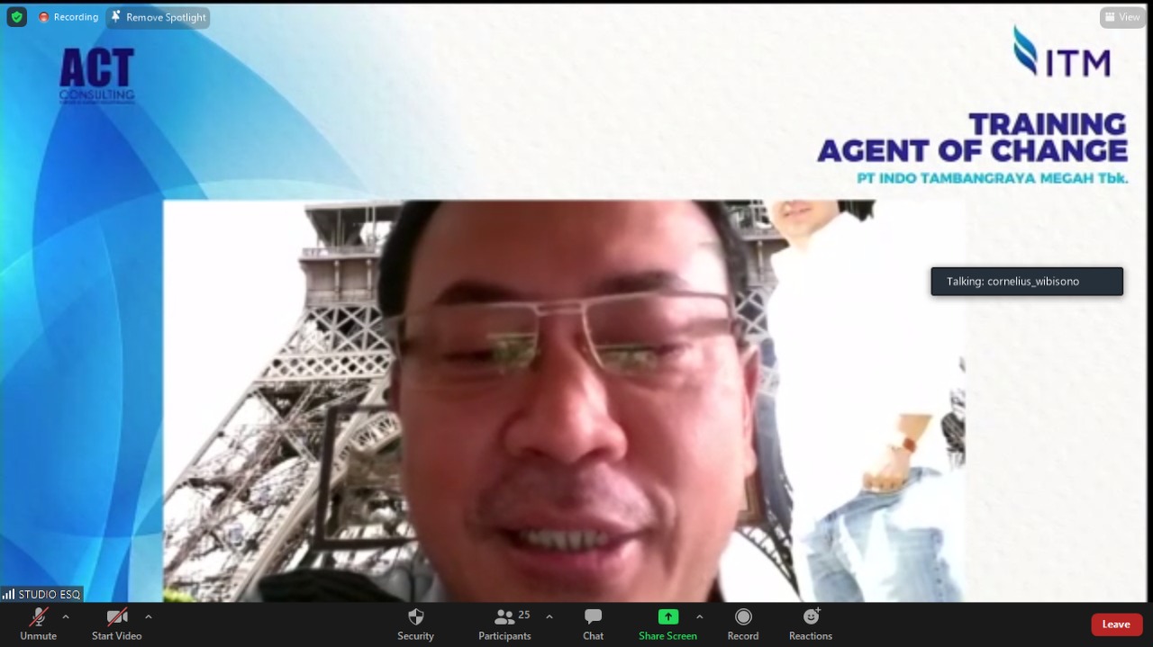 Menurut Coach Tiko mengingat pentingnya peran agen perubahan (Change Agent) untuk menjadi katalisator dalam membentuk budaya yang sehat dan produktif di ITM Group. Apalagi saat ini kita semua berada di Era VUCA dan Pandemi Covid-19.