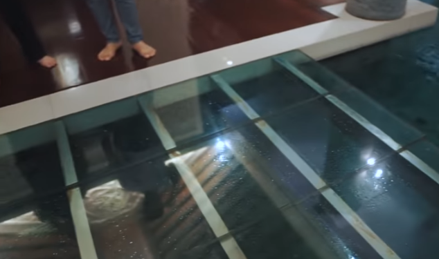 Untuk menyebrang dari rumah ke Musola Umi, ada 7 buah kaca dengan filosofi yaitu tawaf 7 kali, sa’i 7 kali dan 7 ayat yang dibaca berulang ulang.