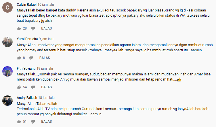 Aish TV House Tour, Komentar Netizen Terkait Rumah Ary Ginanjar