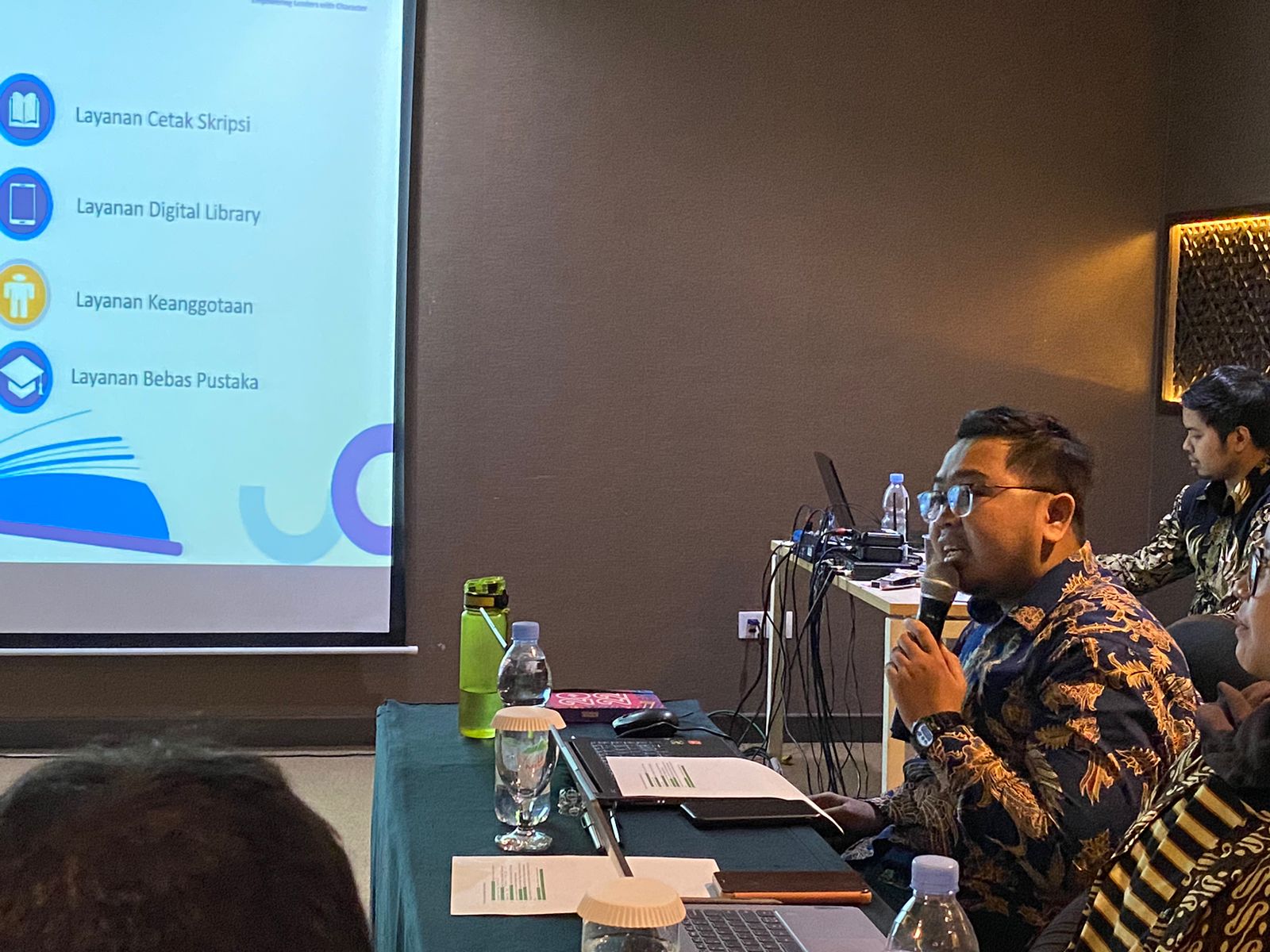 Pustakawan dan jajaran manajemen ESQ Business School yang menemani para asesor yakni Fahru Abdhul Aziz, S.Hum (Koordinator Perpustakaan), Sujoko Winanto, S.T., M.M. (Ketua ESQ Business School), Ariani Palupi, S.E., M.Ak. (Wakil Ketua II Bidang Sumber Daya dan Umum), Weni Meilita, M.Hum (Wakil Ketua III Bidang Kemahasiswaan Kerjasama dan Kelembagaan serta Koordinator Perpustakaan periode 2013-2021).