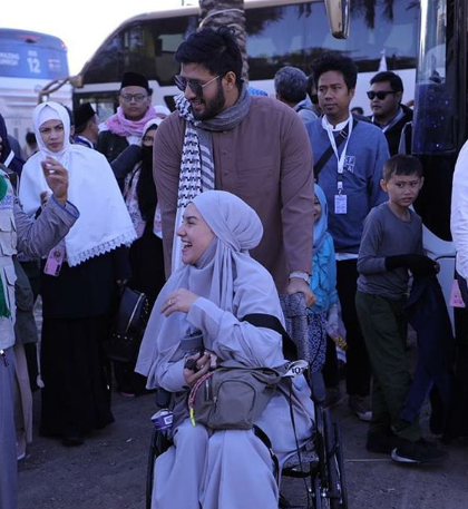 Tapi Alhamdulillah mereka jadi berangkat umroh meskipun Ibel sesekali menggunakan kursi roda yang dipapah oleh suami tercintanya.