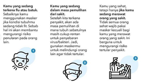 (WHO). WHO menjelaskan, penggunaan masker hanya direkomendasikan untuk orang