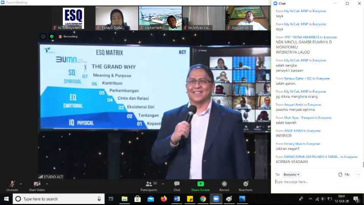 Ketika ESQNews.id meninjau di dalam zoom meeting, suasana tanya jawab terlihat sangat aktif. Para Leaders di Pelindo III menjawab pertanyaan dari Coach Rinaldi melalui forum chat di zoom sebagai berikut: salah sangka, salah ajaran, pesimis, salah kaprah, inferior, dan lainnya.
