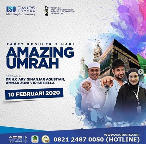 10 Februari 2020, bertepatan dengan keberangkatan umrah, Ary Ginanjar Agustian bersama Irish Bella, Ammar Zoni dan 580 Jama’ah lainnya. Namun Allah berkehendak lain, Maha pemilik skenario hidup makhluk-Nya.