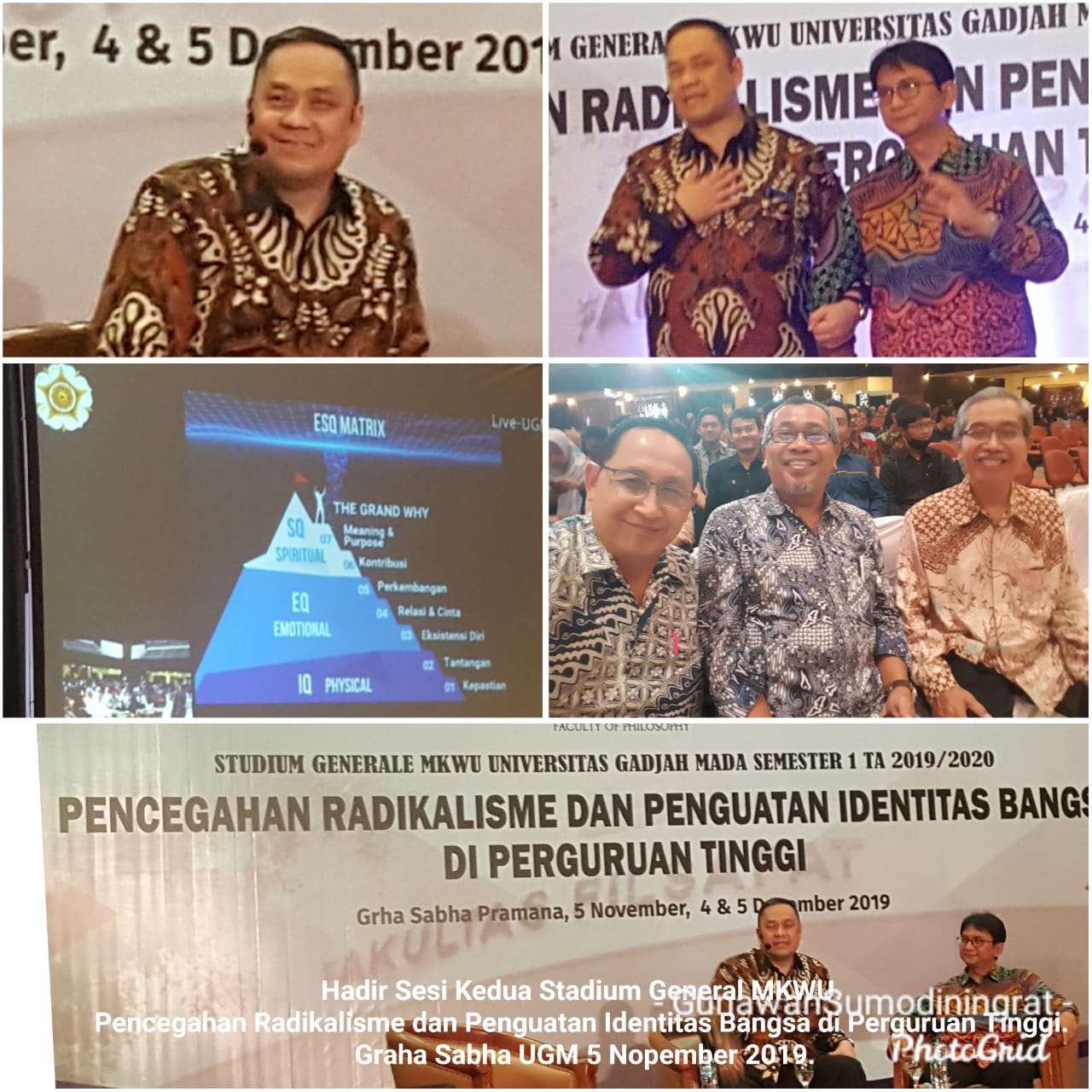 ESQNews.id, YOGYAKARTA - Hadir sebagai salah satu pembicara dalam Kuliah Umum bertajuk Pencegahan Radikalisme dan Penguatan Identitas Bangsa di Perguruan Tinggi yang diselenggarakan Fakultas Filsafat Universitas Gadjah Mada, Ary Ginanjar memberikan pemaparan di hadapan ribuan mahasiswa pada Selasa (5/11/2019) di Grha Sabha Pramana UGM, Yogyakarta.