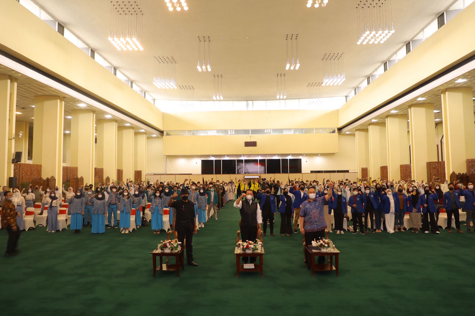 Ratusan mahasiswa dan pelajar bertepuk tangan dengan sangat antusias. Lalu, lagu kebyar-kebyar diputar memenuhi seisi ruangan tersebut.