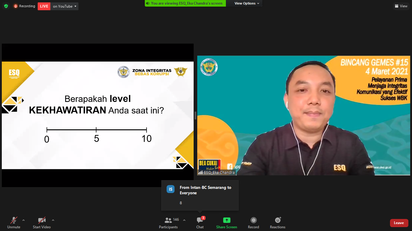 ESQNews.id, JAKARTA – Sucipto, Kepala Kantor Bea Cukai Semarang ikut hadir dalam forum In House Training dari Kanwil DJBC Jateng dan DIY KPPBC TMP A Semarang. Bertujuan untuk meningkatkan motivasi kerja sekaligus bincang Gemes #15 (Gerakan Milenial Semarang).