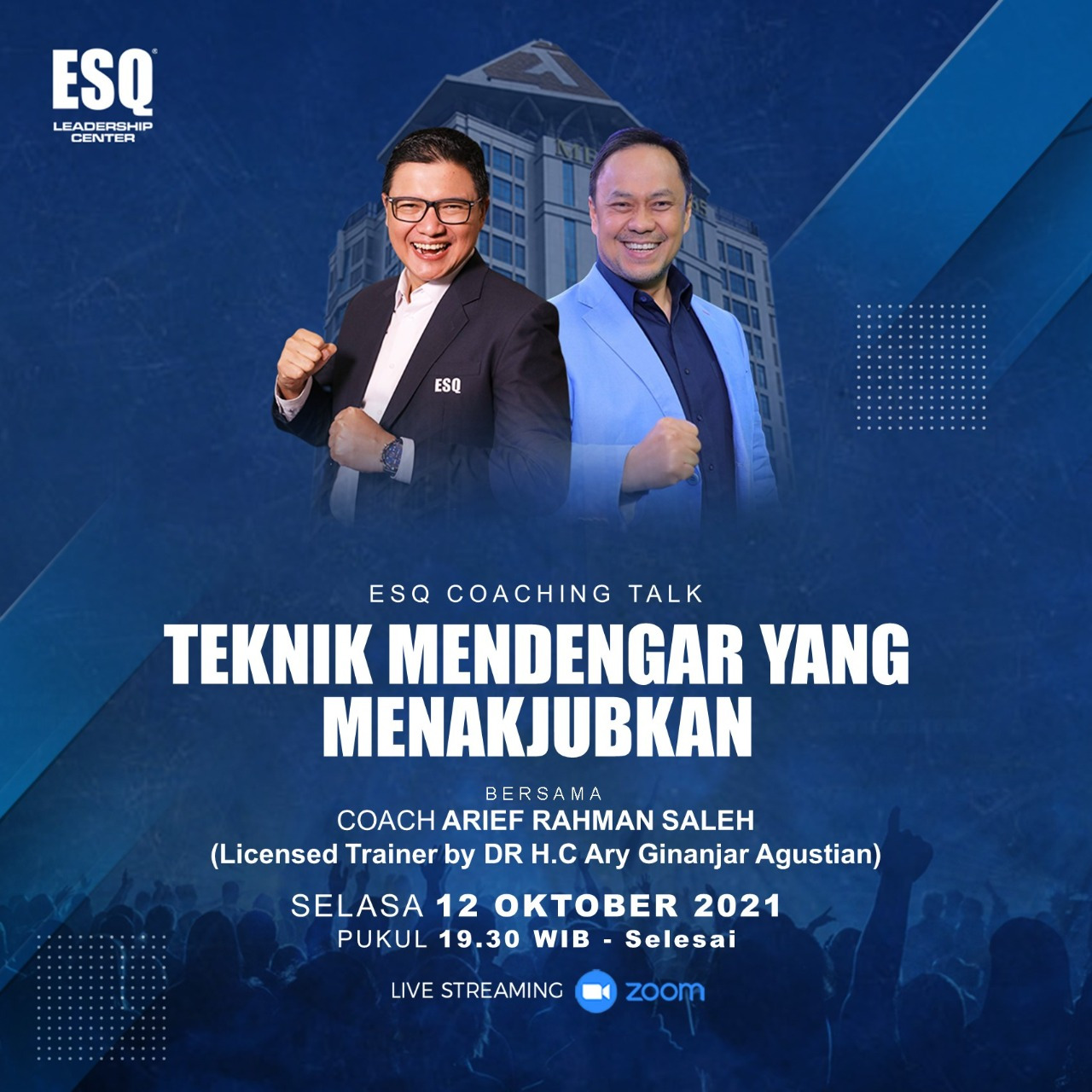 Free ESQ Coaching Academy pukul 19.30 WIB melalui Zoom Meeting. Acara ini